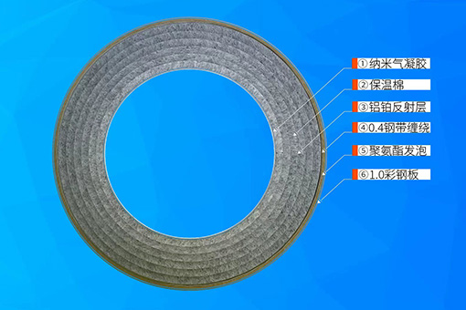 外保溫層選用硬質(zhì)聚氨酯泡沫材料,耐熱性較低但隔熱保溫性能很好,同時聚氨脂發(fā)泡的延展性具備穩(wěn)固作用,解決了傳統(tǒng)保溫結(jié)構(gòu)因熱脹冷縮產(chǎn)生和增大塊間空隙的問題。
